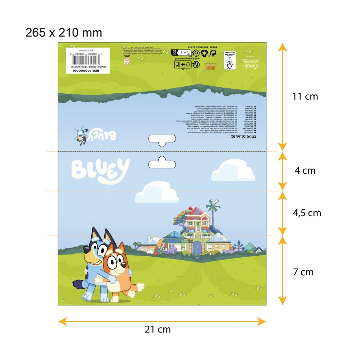 The Bluey Hat and Gloves Set is specially designed for children from 3 years old, offering a practical and comfortable solution to protect against the cold during the winter season. Made of 100% acrylic, a material that ensures softness, thermal insulation, and durability, it is ideal for keeping hands and head warm without losing mobility or comfort. Its light blue color adds a cheerful and versatile touch, easily matching different children’s styles. This product has been made following appropriate standards for winter clothing items intended for children, ensuring a proper and secure fit for the recommended age. Additionally, the set is a complete and functional option to protect the most exposed areas from the cold, making it an essential accessory for child care in cold climates. In short, the Bluey Hat and Gloves Set offers quality and practicality for those looking for a comfortable winter accessory suited to the needs of young children.